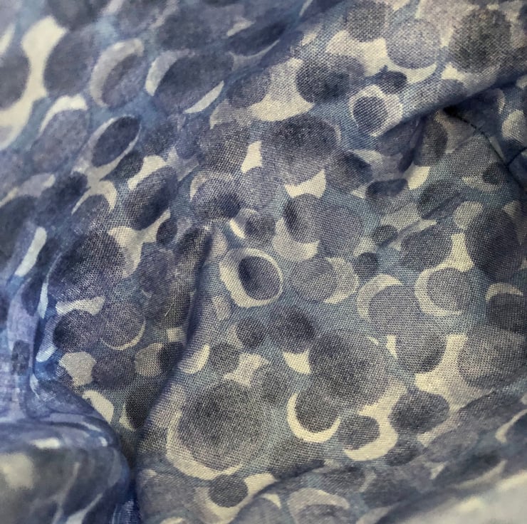 Materials: repurposed/up-cycled fabric: 100% cotton. Blue zip.