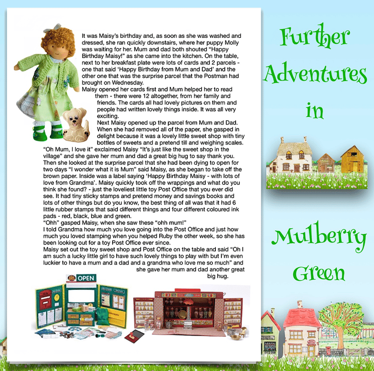 You can read my stories about Mulberry Green on my Facebook and Instagram pages - Maisy Muffin Rag Dolls or alternatively, you can find all of my stories on my Pinterest board - Mulberry Green stories