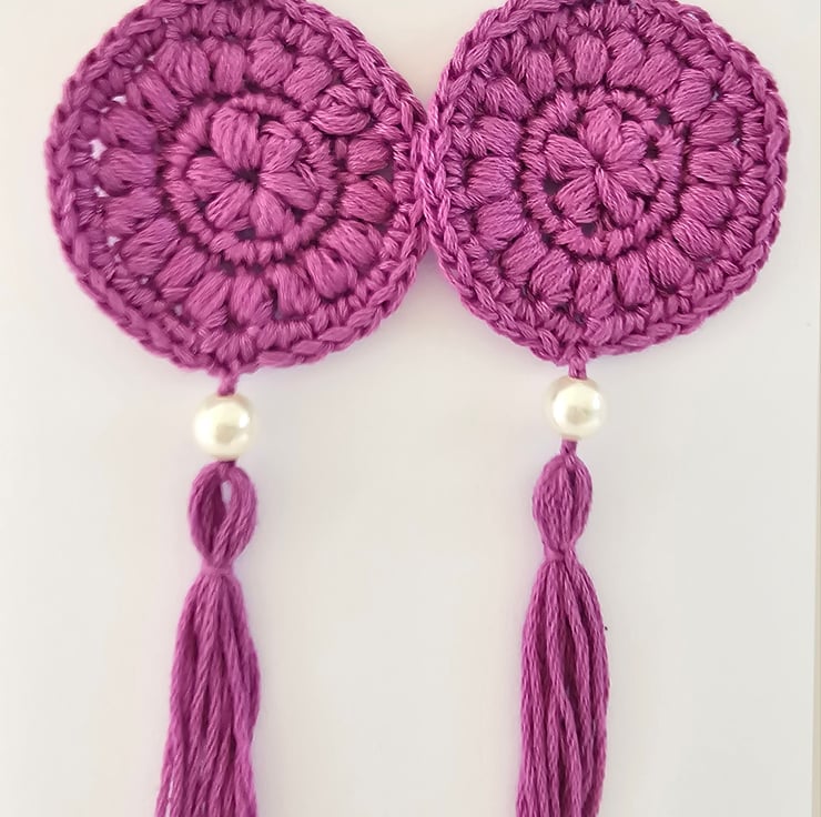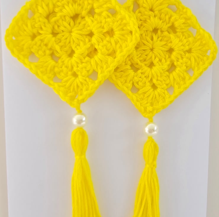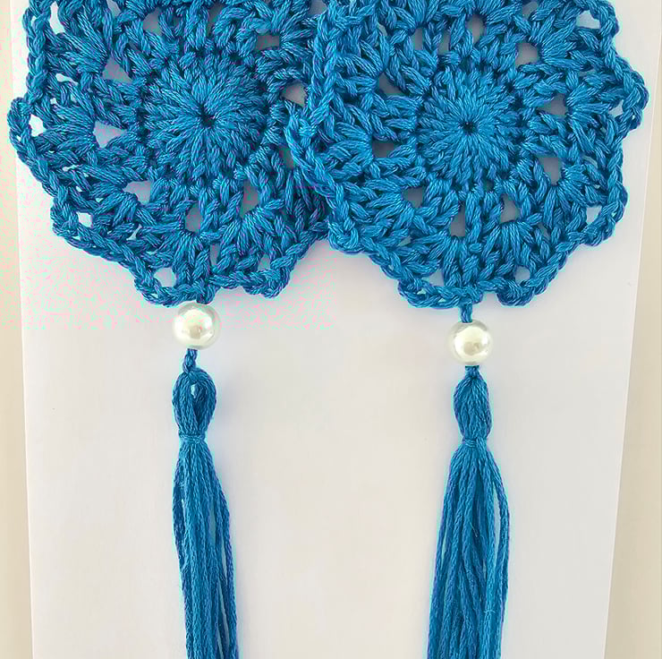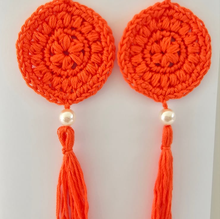 These super cute and trendy crochet earrings have been hand made using embroidery thread.