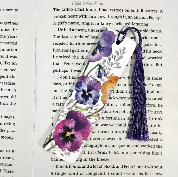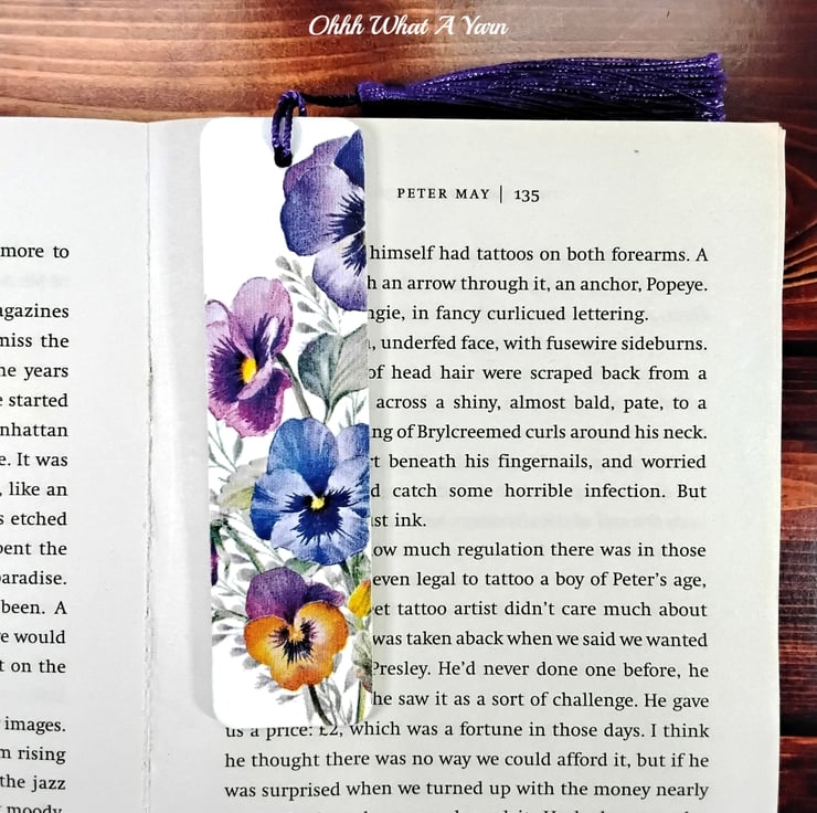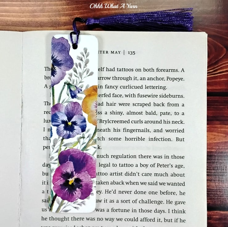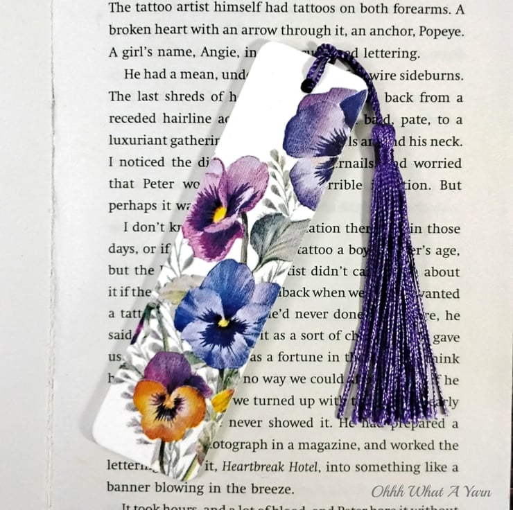 I have painted the bookmark with white acrylic which then makes the colours pop when I added the decoupage pansy design. I have then sealed the bookmarks with multiple coats of matt varnish for protection and added a satin tassel in coordinating colours.