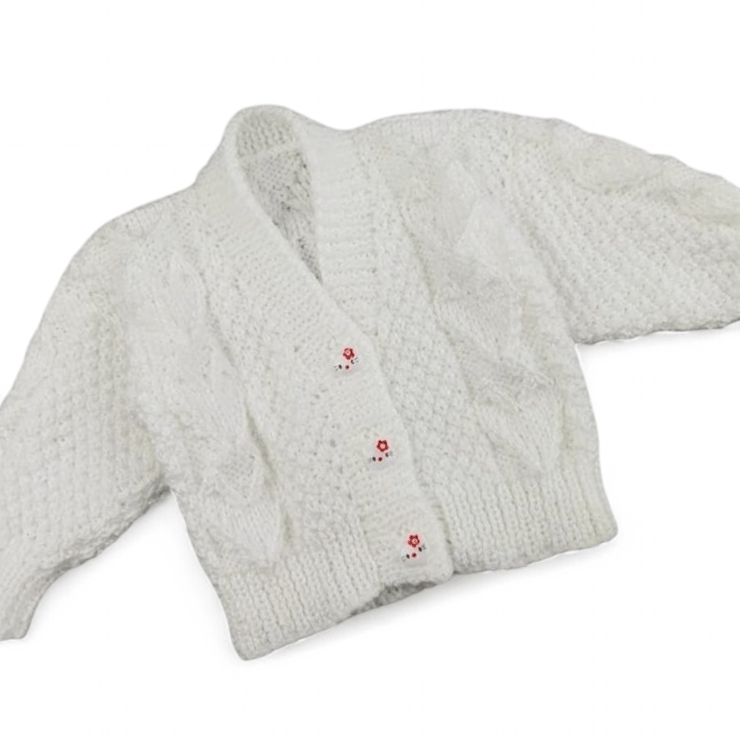 Handmade White Baby Cardigan – Perfect for 0-3 Months