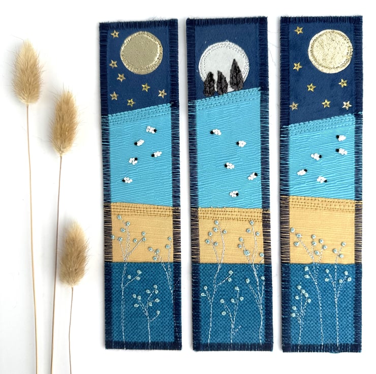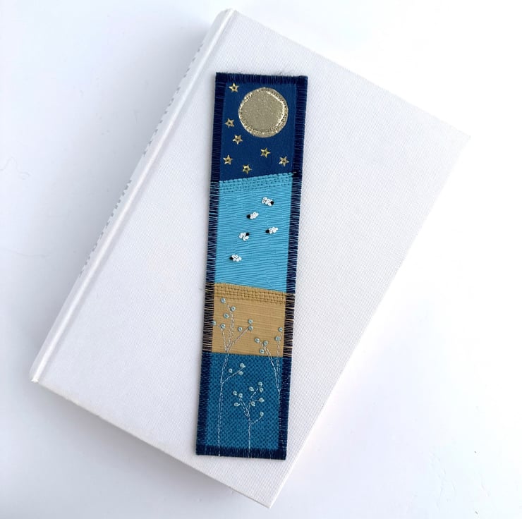 This lovely moonlit meadows bookmark would make an ideal gift for anyone who loves reading and the countryside. It is also an inexpensive way of owning a piece of original textile art.