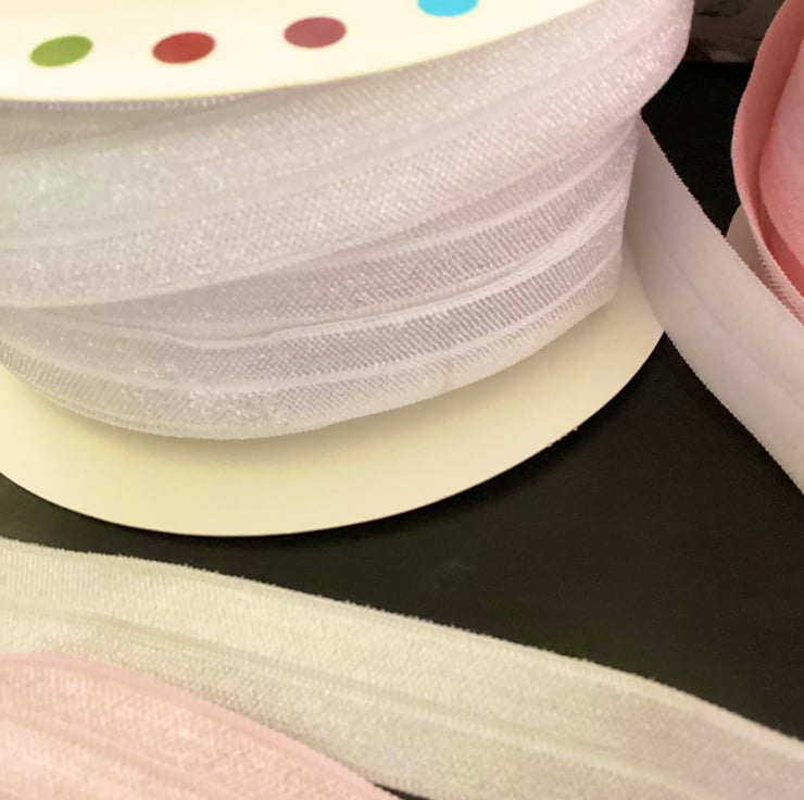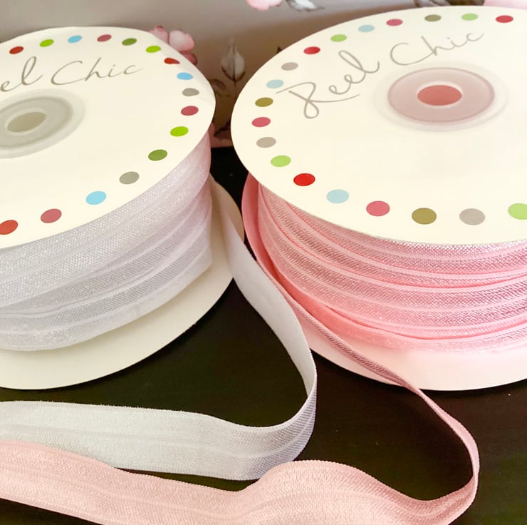 Fold over headband stretchy elastic ideal for making pretty headbands for babies, children or adults in a choice of pink or white