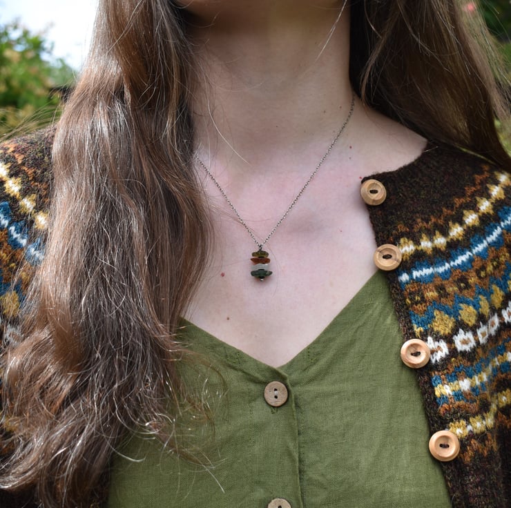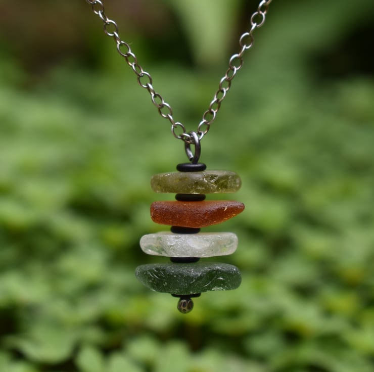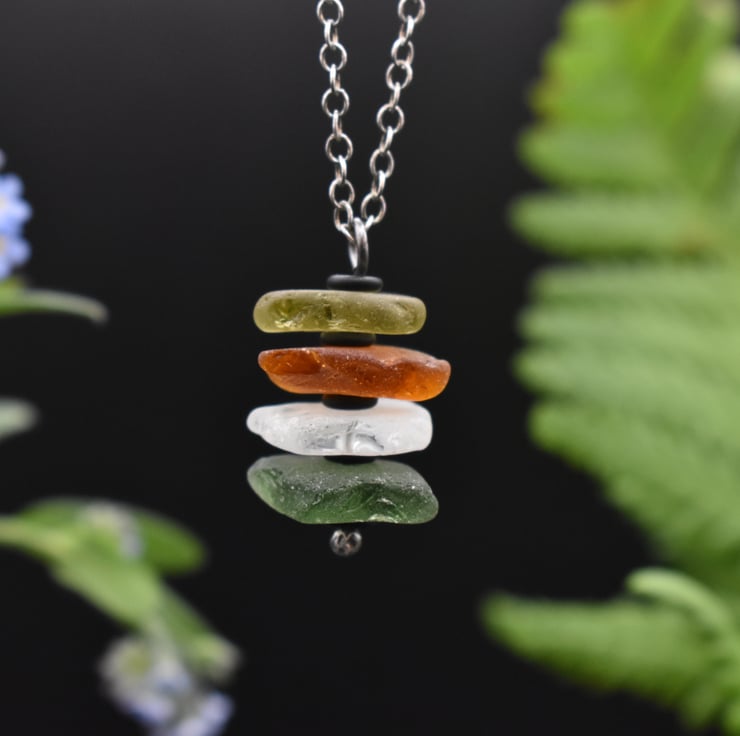 Highland Sea Glass and Sterling Silver 925 Stacked Necklace