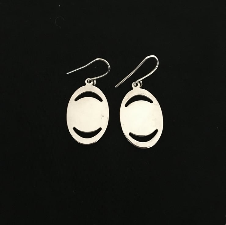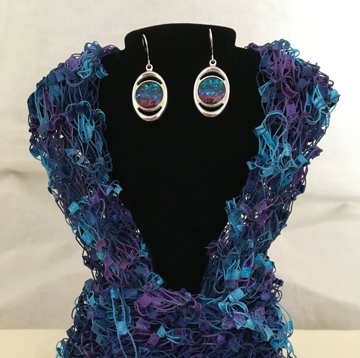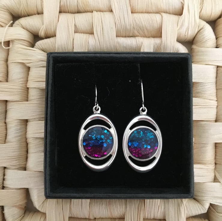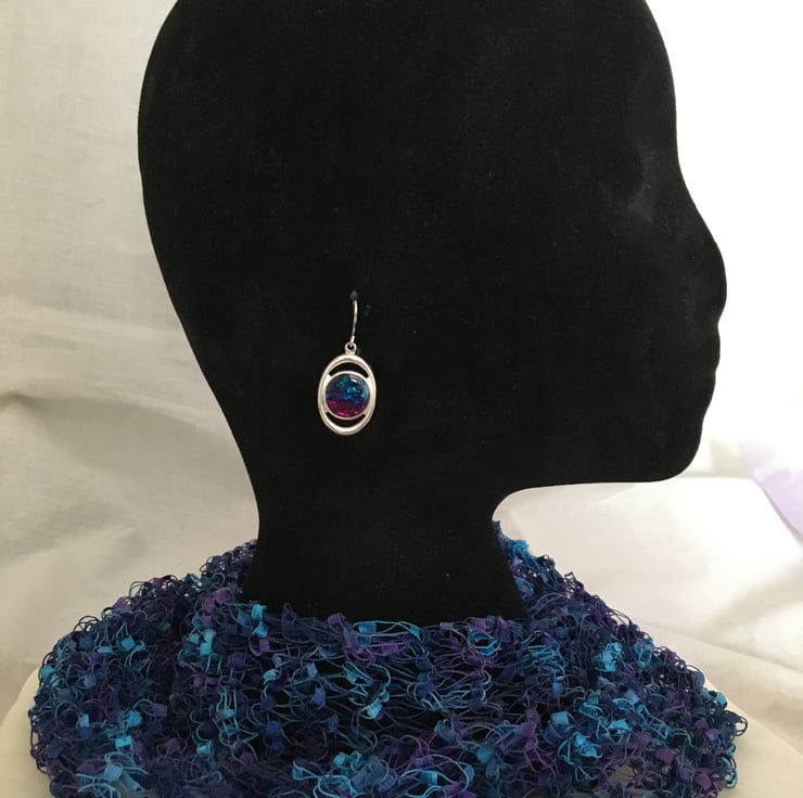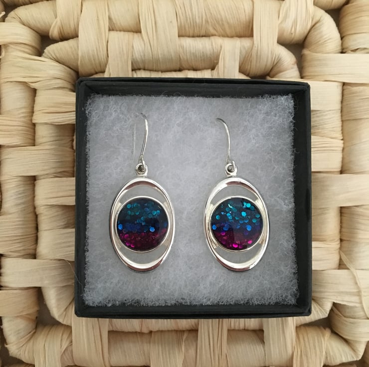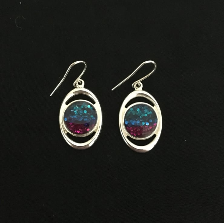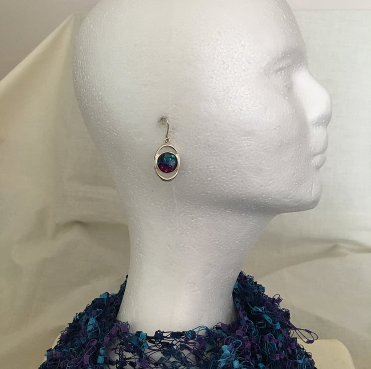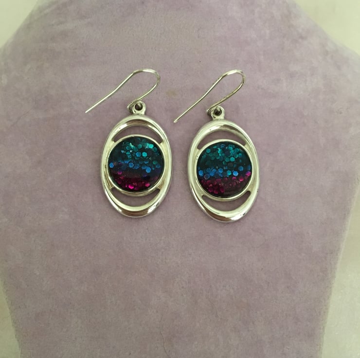 Pretty handcrafted oval tri-coloured centred earrings in a quality silver tone setting.