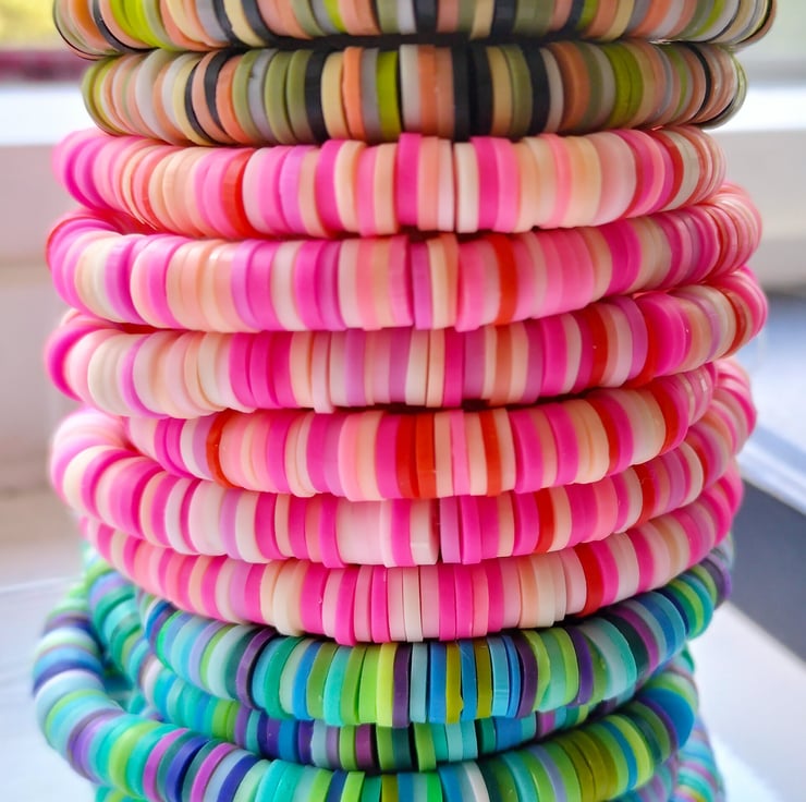 These are made using polymer clay flat beads. Measures 19cm so medium. These can be made to size, just message me.