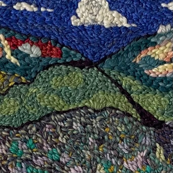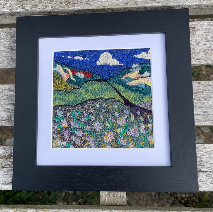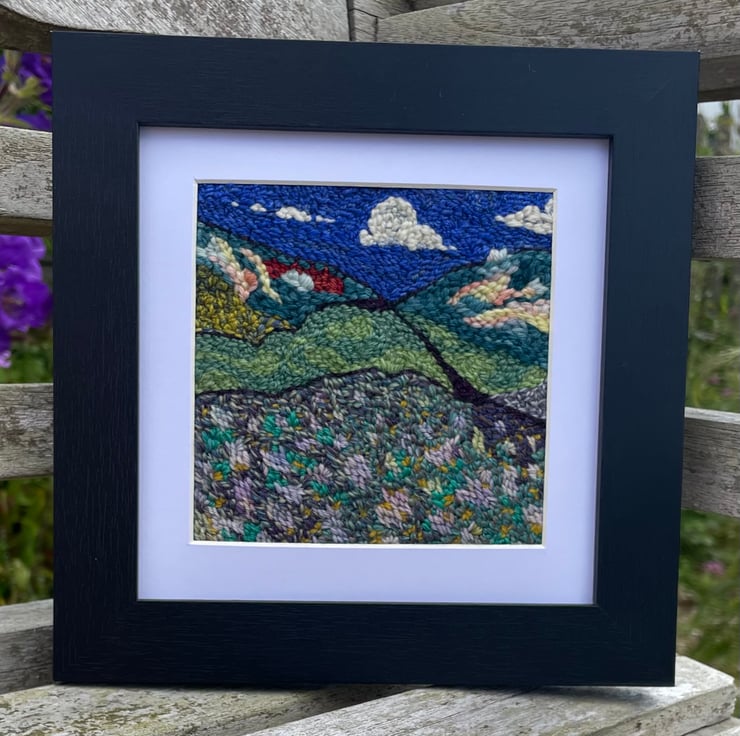Hand embroidered by me using various wool yarns on to a wool felt background.