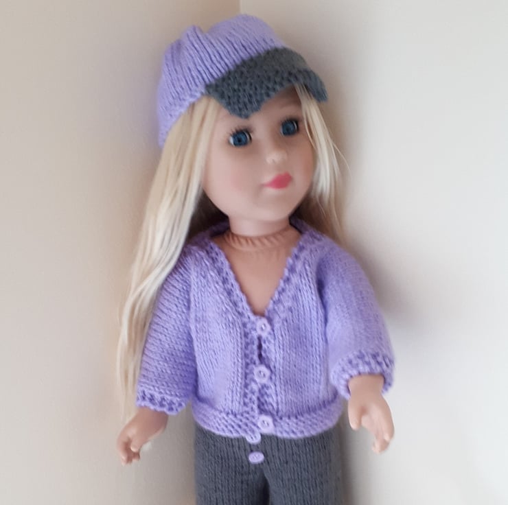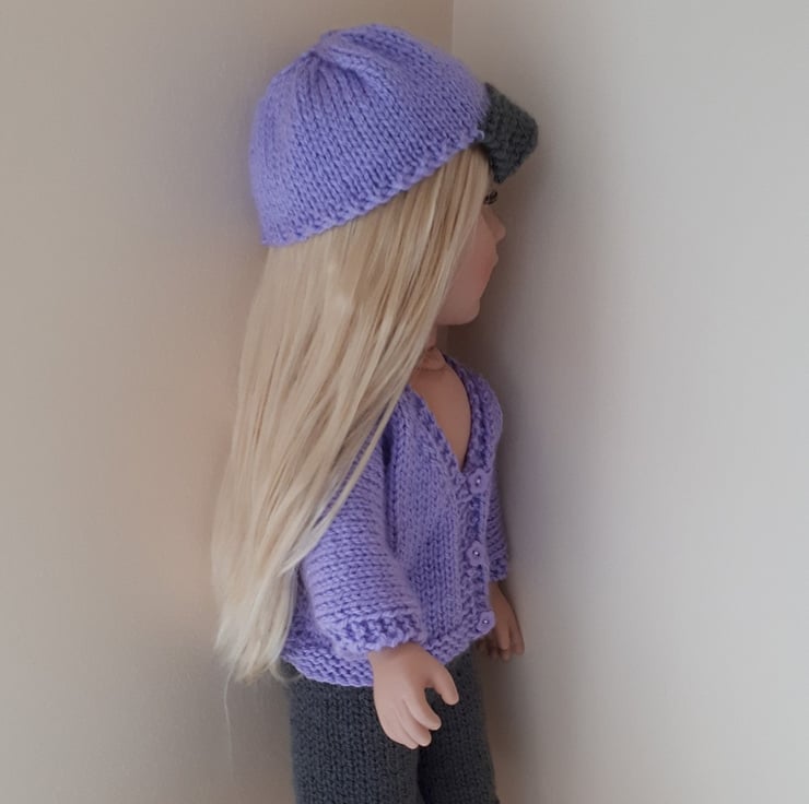 This hand knit PATTERN is for a hat for a Doll. To fit doll Height 46 cm or 18 inches. The hat is knitted in double knitting yarn using 3.25 mm and 4 mm knitting needles and is knit flat and seamed.