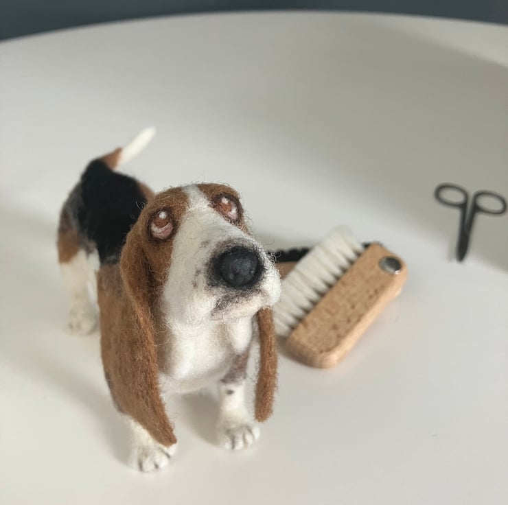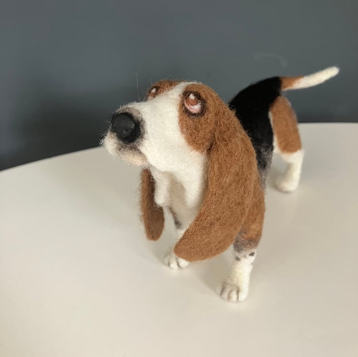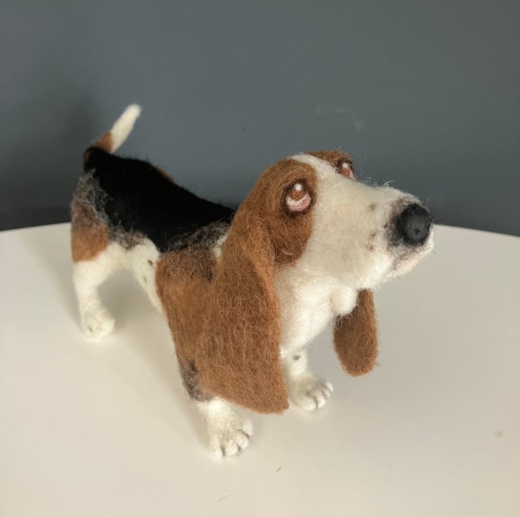 Harold the Basset hound is result of many years perfecting the skills of needle felting and was a labour of love. Dogs are my favourite muses and I have had the privilege of making a fair few over the years. The model is a one off ,it took many hours to complete but a joy to create.