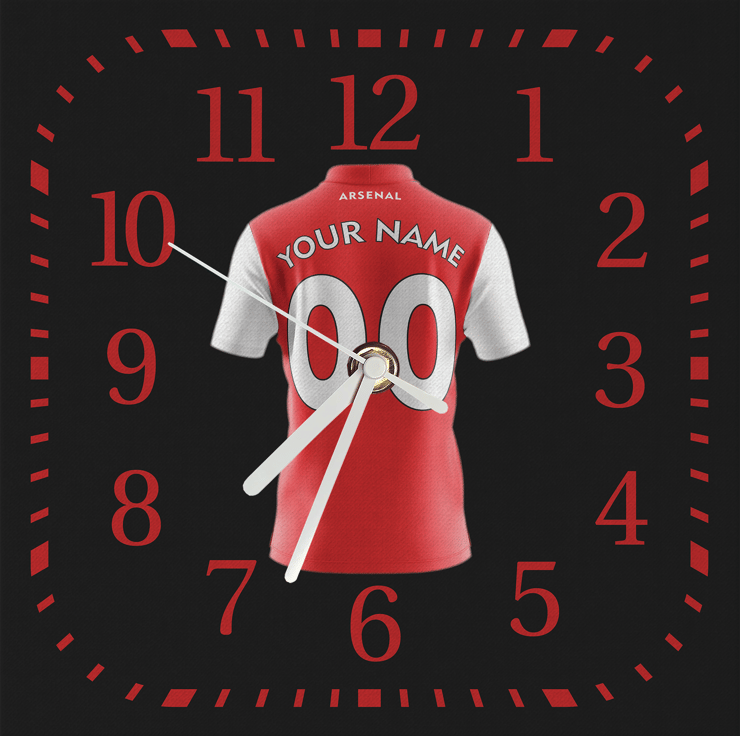 Our collection showcases meticulously crafted wall clocks, each adorned with vibrant designs reminiscent of Arsenal's iconic jerseys. From classic red and white stripes to modern interpretations featuring bold graphics and player numbers, we offer a diverse range of options to suit every fan's taste.