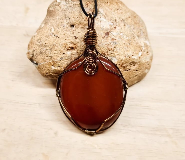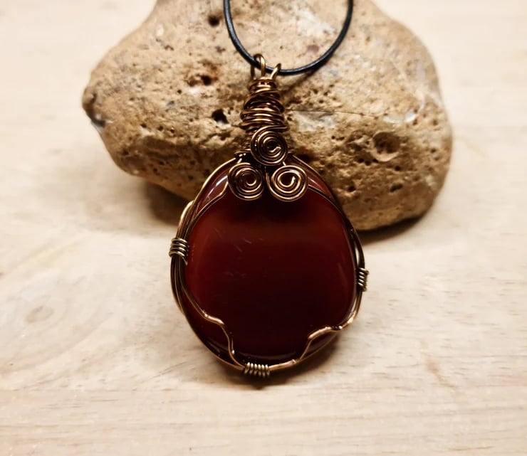 This is a unisex carnelian pendant necklace that I have wire wrapped with antique bronze copper wire. MADE TO ORDER SO STONES AND WIRE WILL VARY FROM THE PHOTOS.