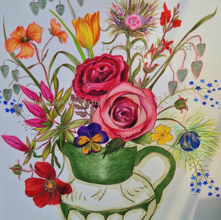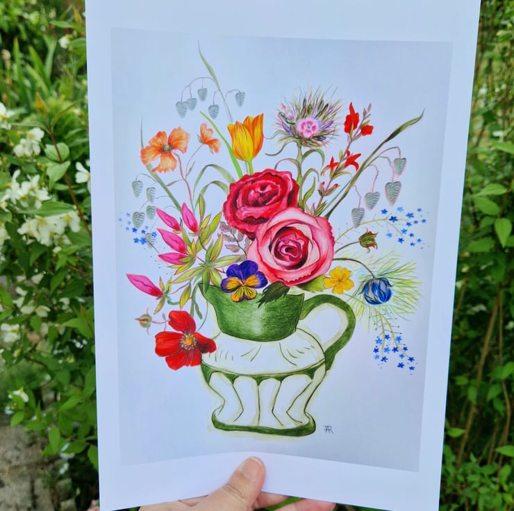 Beautiful, colourful, floral arrangement print. Prints are taken from my original, mixed medium artwork.