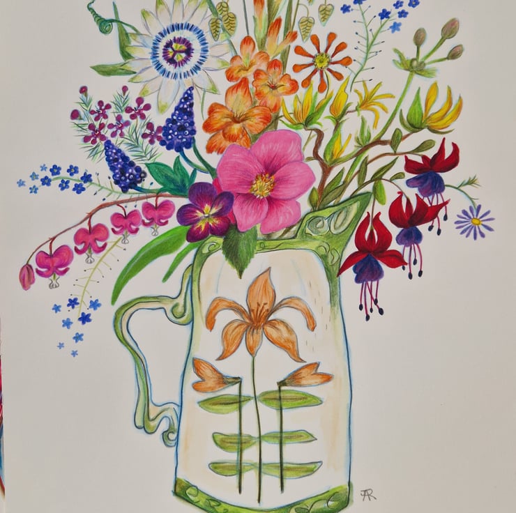 Beautiful, colourful, floral arrangement print. Prints are taken from my original, mixed medium artwork.