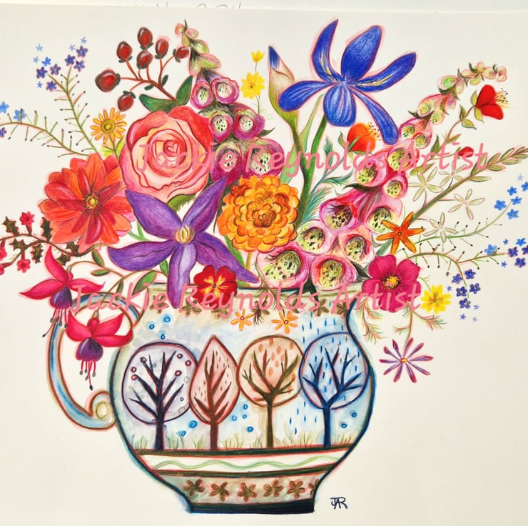 Flowers in the tree jug,  print from original artwork. A3, A4, A5 available.