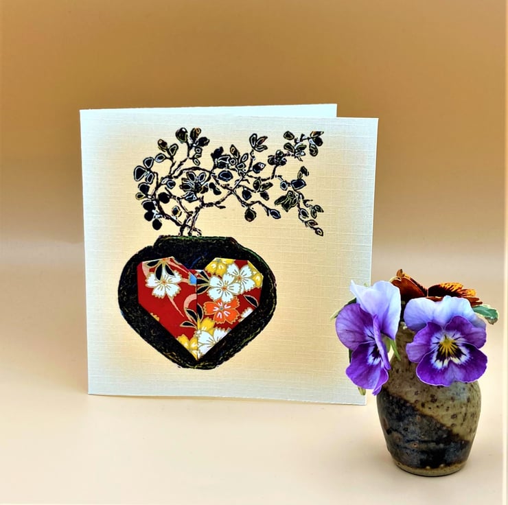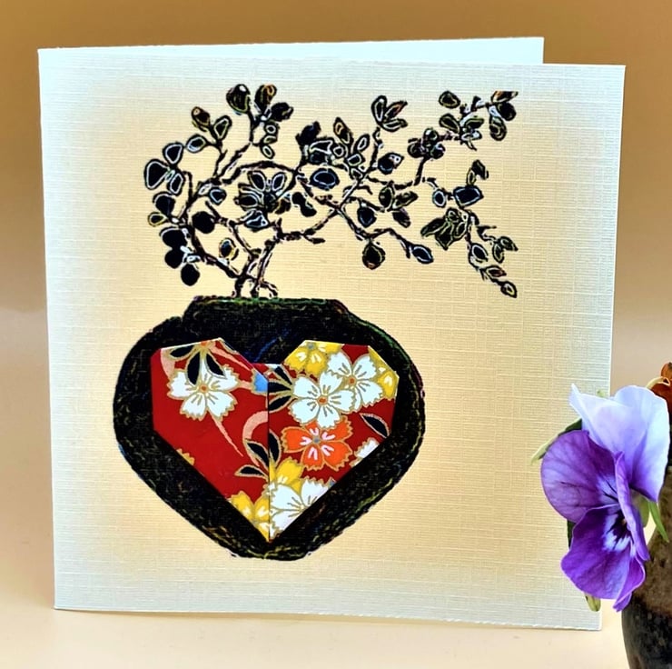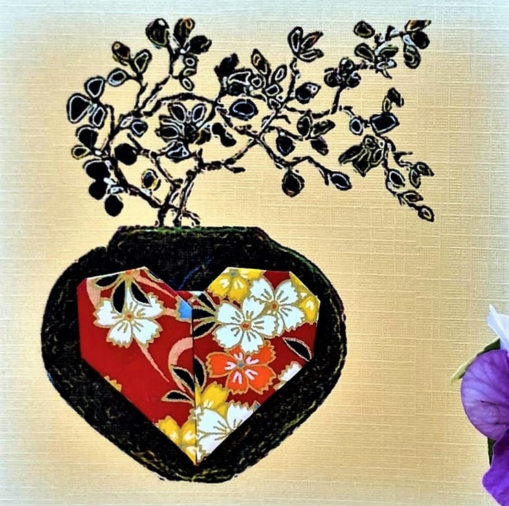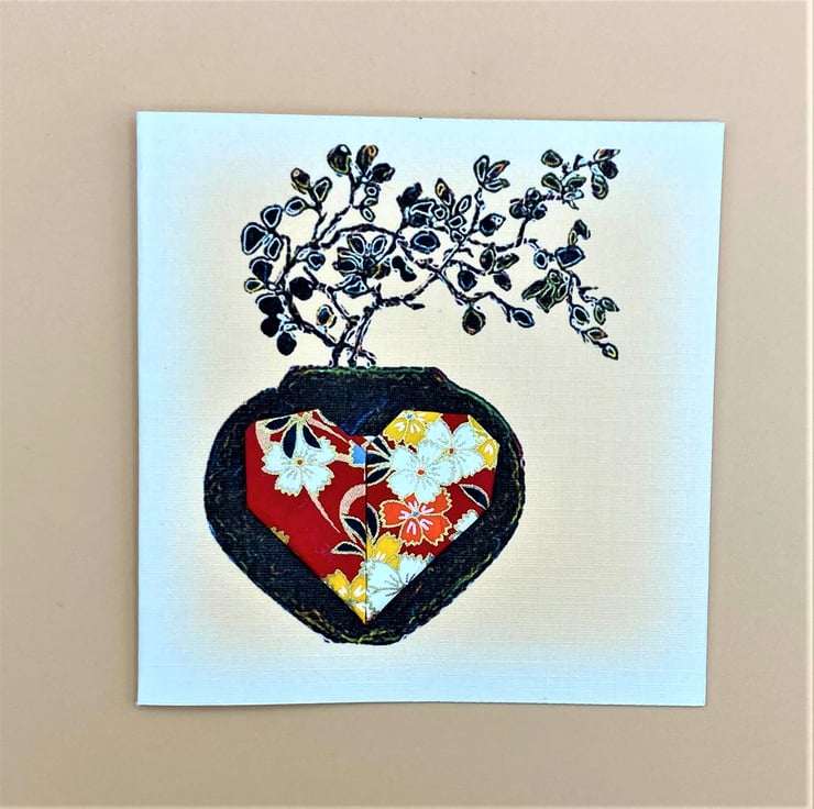 This little special occasion romantic Greetings Card has a hand folded Origami heart in Japanese paper pasted onto my own design printed card. Suitable for Anniversaries, Engagements, weddings or any time you want to say 'I love you' - the colourful heart makes a charming way to send a very special message. No two cards are ever quite the same so they are all one off originals. They look great framed as a keepsake.