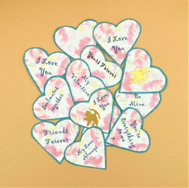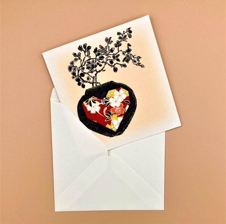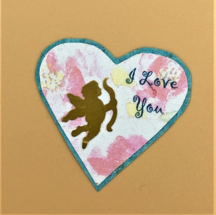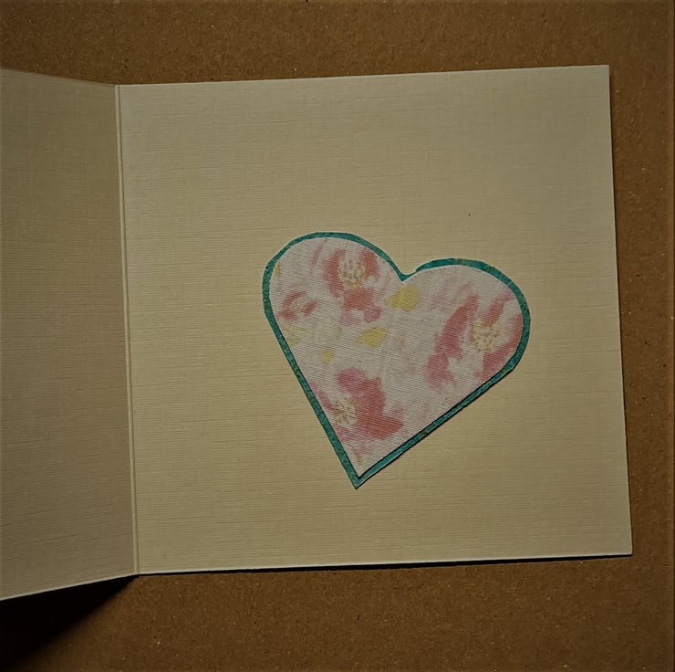 A separate heart 'love token' made of my own exclusive fabric printed with the words 'I love you' is included inside the blank card.