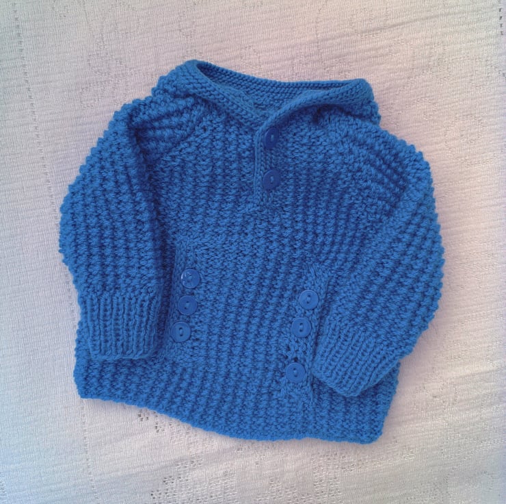 Knitted Hooded Jumper with Front Pocket, Baby's Jumper, Custom Make, Baby Gift, Hand Knitted, Baby Clothes, Baby Jumper, Baby's Hoodie, New Baby Gift, Baby Shower Gift