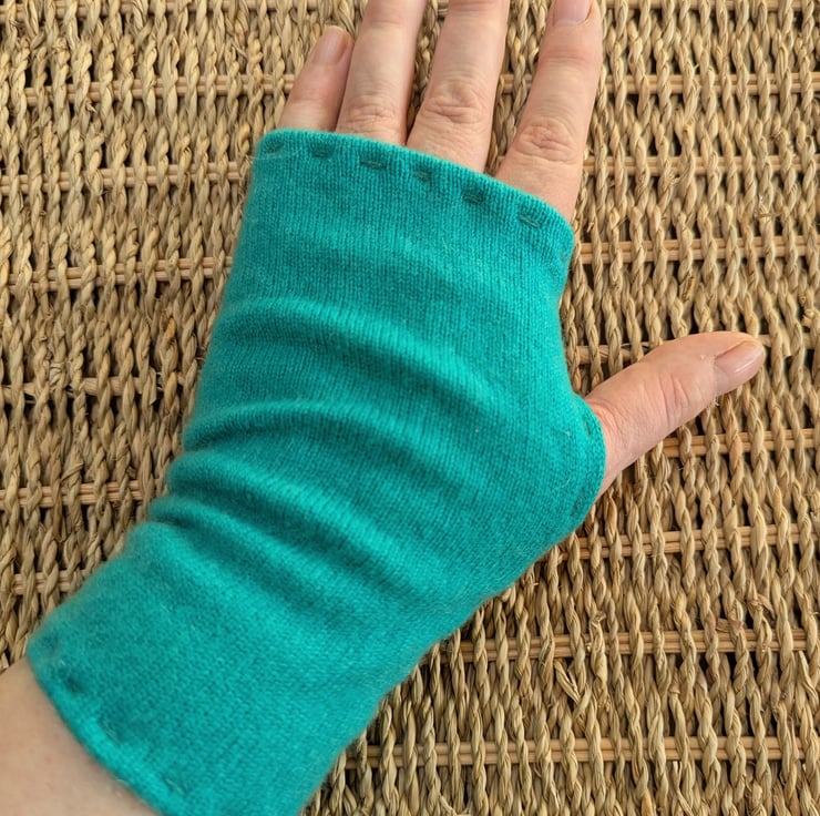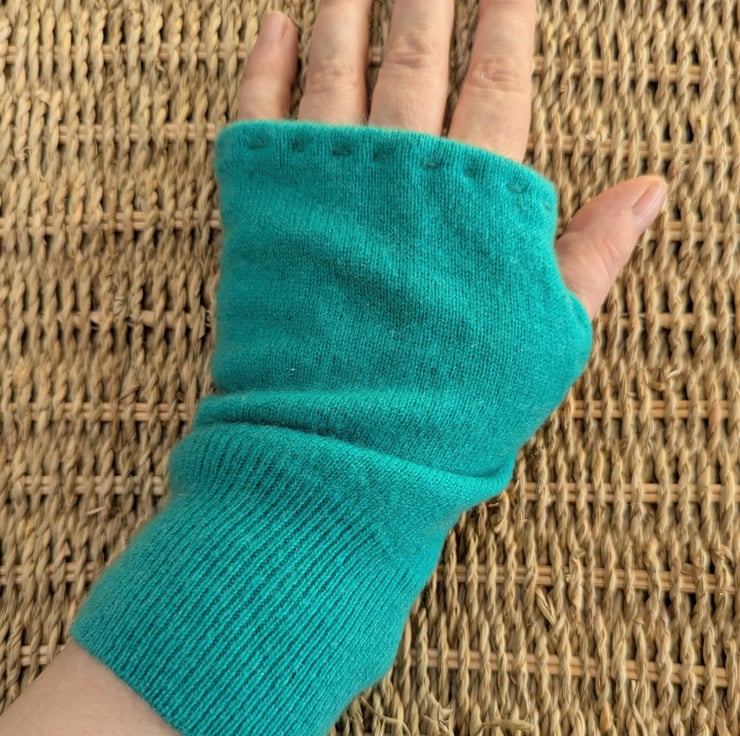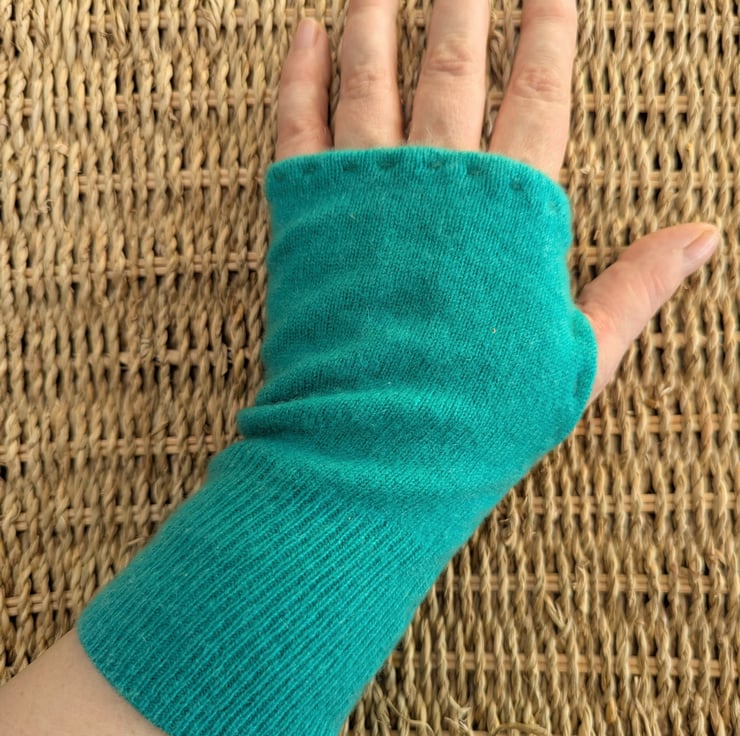 Super Soft Green Cashmere Wrist Warmers Upcycled from recycled knitwear