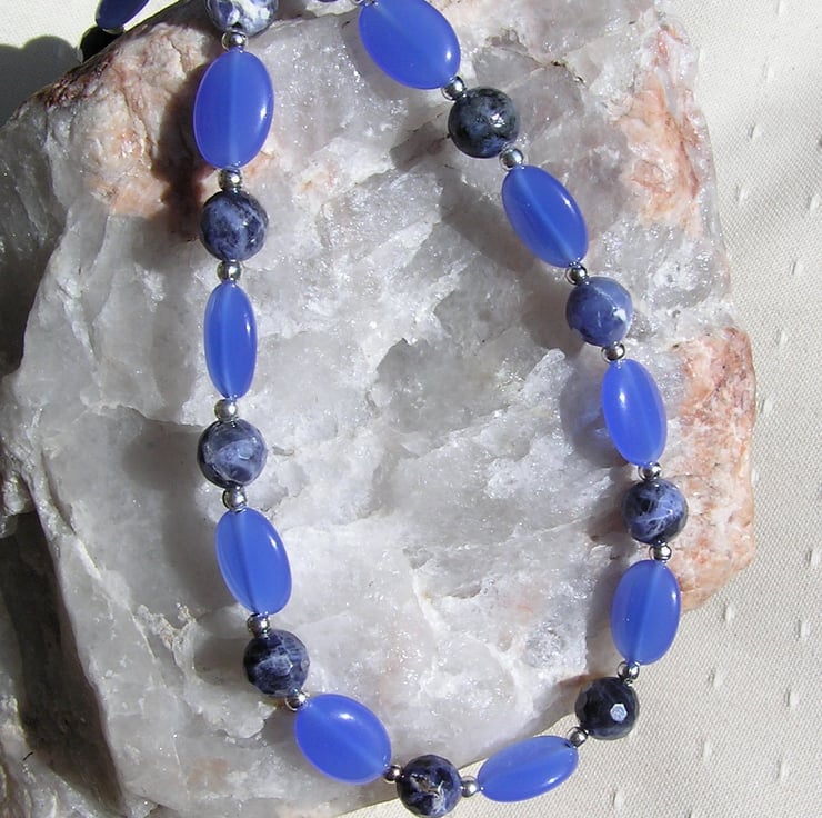 Blue Jade & Blue Sodalite Crystal Gemstone Statement Necklace