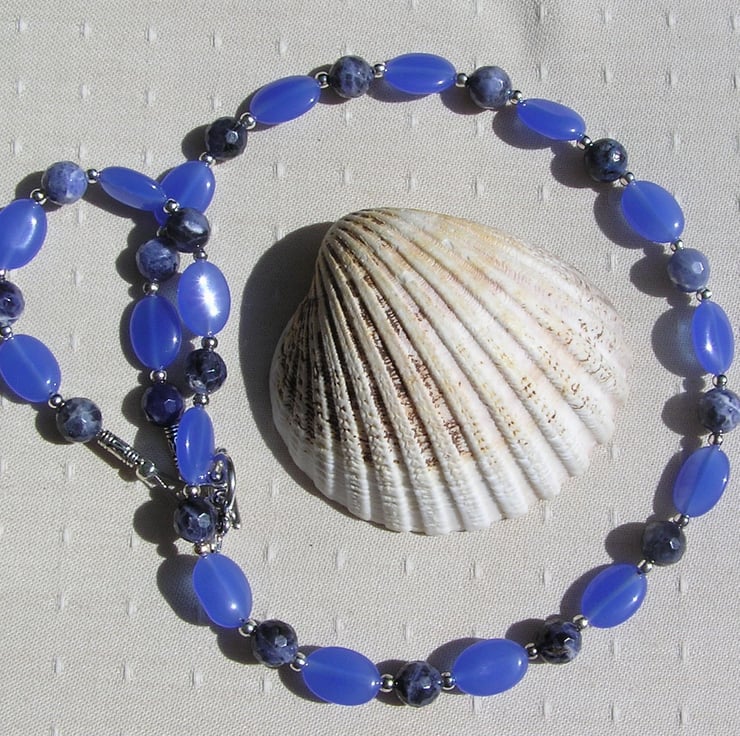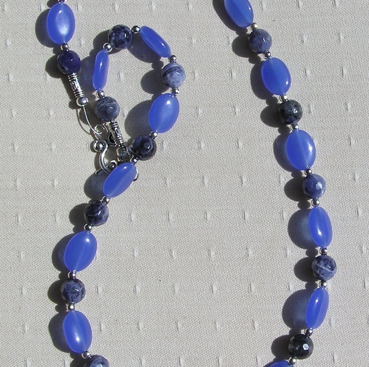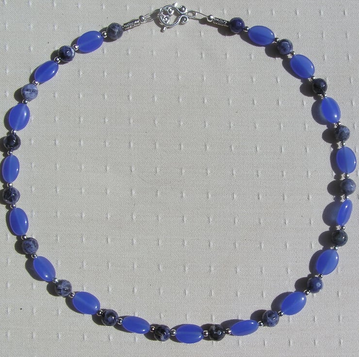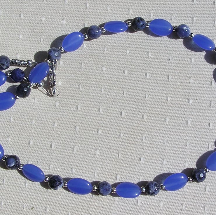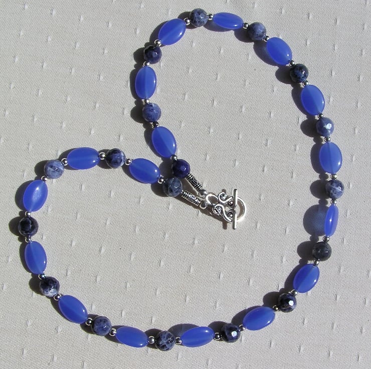 This Stunning Sumptuous Necklace is made from Alternating Blue Jade Oval Beads… each spaced with a Blue Sodalite faceted round bead - an Wonderful Swathe of Blue that will look stunning either worn casually or with something more Elegant for a Special Evening out