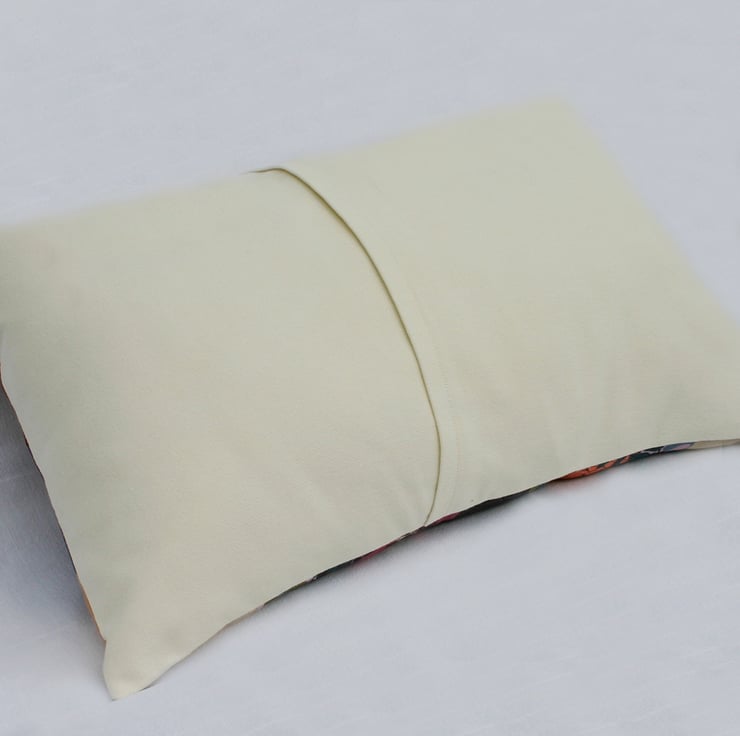 This machine sewn cushion is made from high quality pre-washed Kona Cotton. The reverse of the cushion is a heavy, durable cream cotton, with an envelope opening for easy handling and removal. The cushion inner, which is 65% polyester and 35% cotton fibres, is also included.