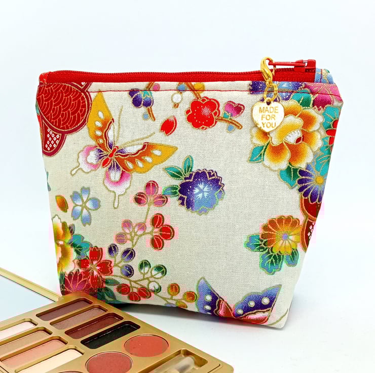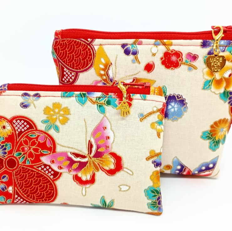 The Coin Purse is 13cm x 10cm and the Makeup Bag is 15cm x 12cm x 5cm. Both ideal for your handbag.