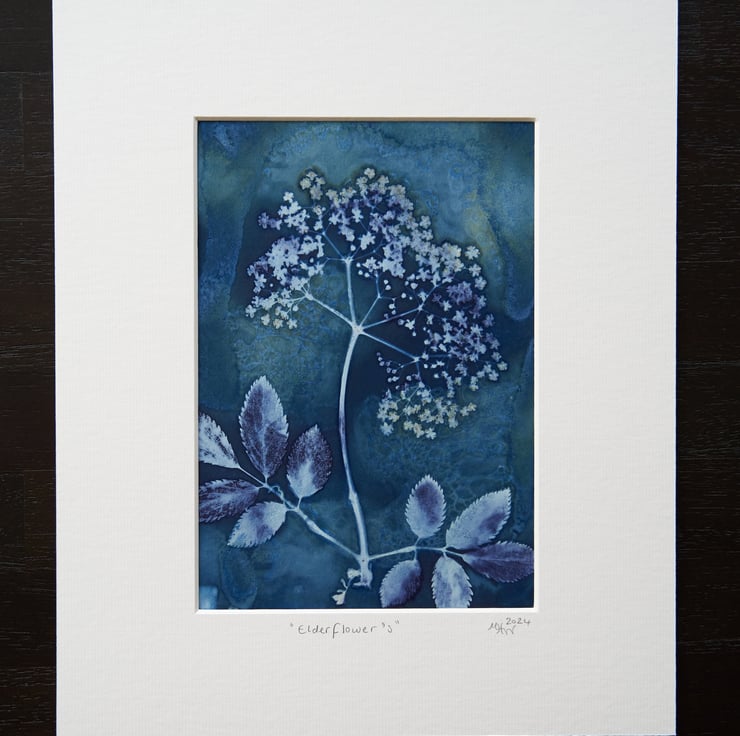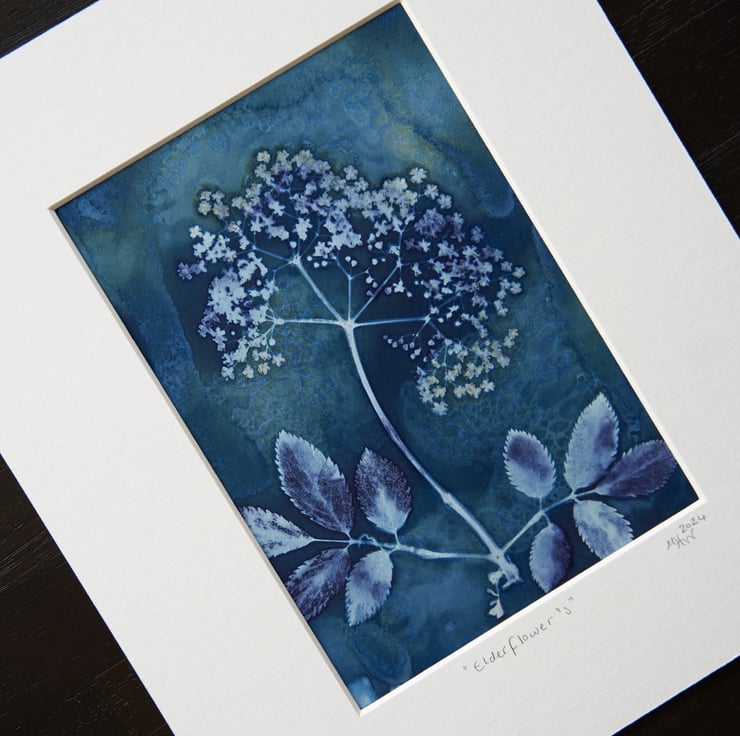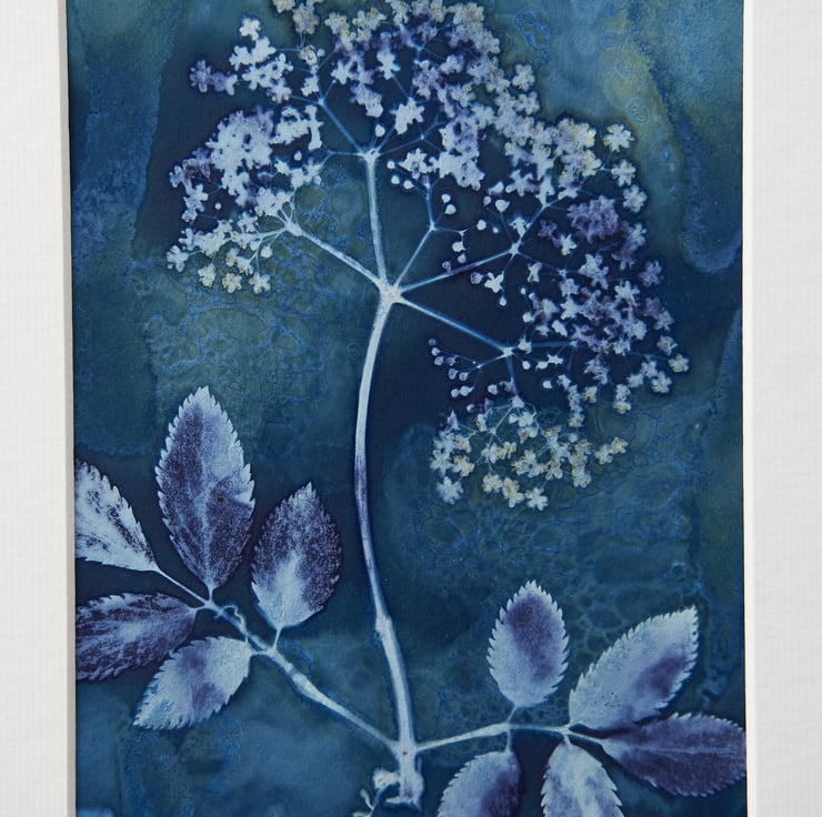 This is a beautiful and unique original A5 (5.8x8.3 inches) wet cyanotype mounted in an acid free mount, ready for framing in a 12x10 inch frame. This cyanotype has been printed on high-quality heavy weight mixed media paper.