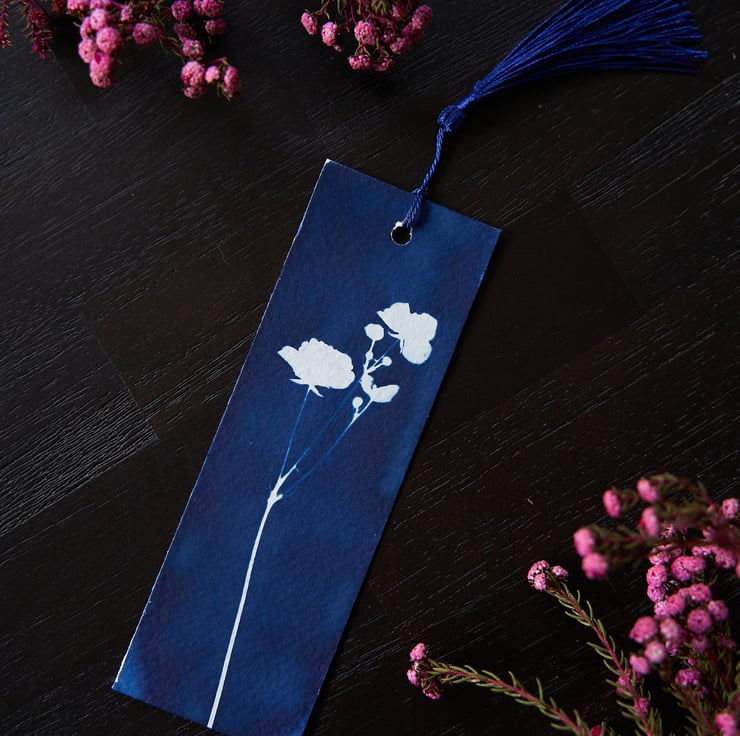 - there may be some markings on the back of the bookmark left from the process of creating and developing the cyanotype