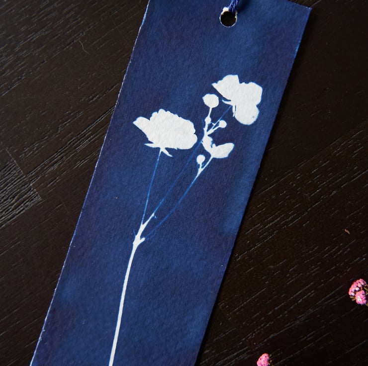 This bookmark has been lovingly handmade using the cyanotype process to create an original and unique design. This particular bookmark features these delicate little buttercups, a delight to see popping up all over England when the sun makes its appearance.
