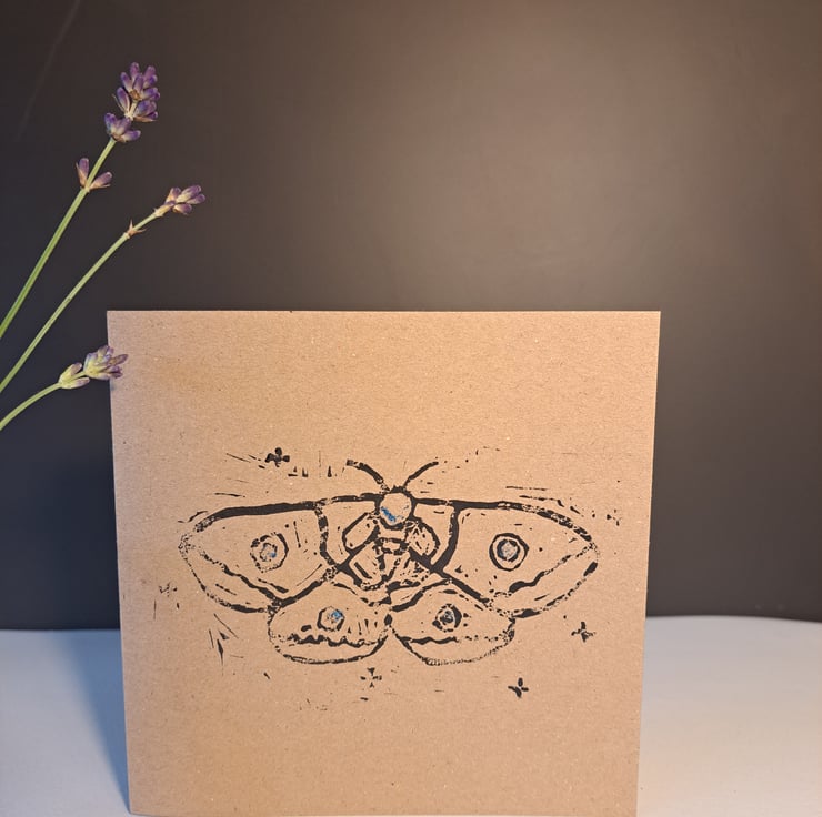 These cute little cards are hand printed with spots of glitter on the wings. They are great for birthdays, an anniversary or as a pice of art fir your home. please specify what colour of glitter you would like when purchasing by sending me a message.