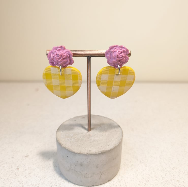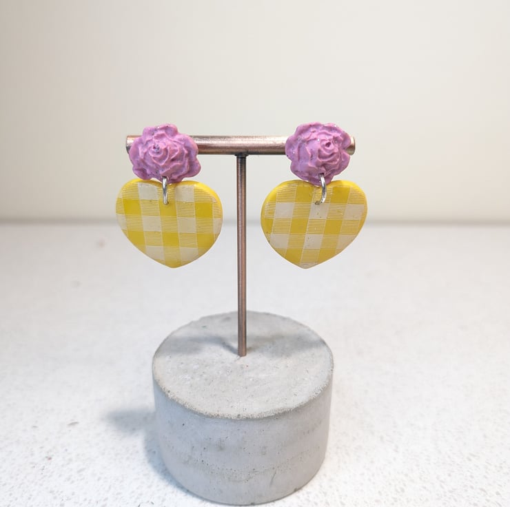 Hand made polymer clay earrings with a floral design. Stud fixing which can be painted with hypoallergenic coating for free on request. see all photos for close up detail. All products handmade therefore there may be minor imperfections. Each pair sold as seen, message for more info