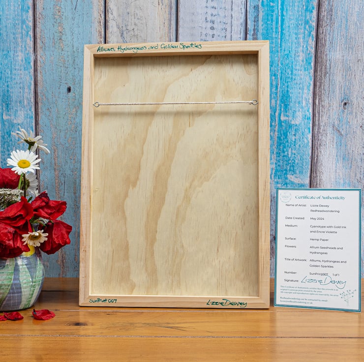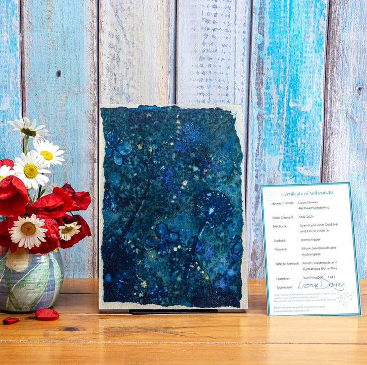 “Allium Seedheads and Hydrangea Butterflies” comes with a Certificate of Authenticity as an Original Artwork 1 of 1.