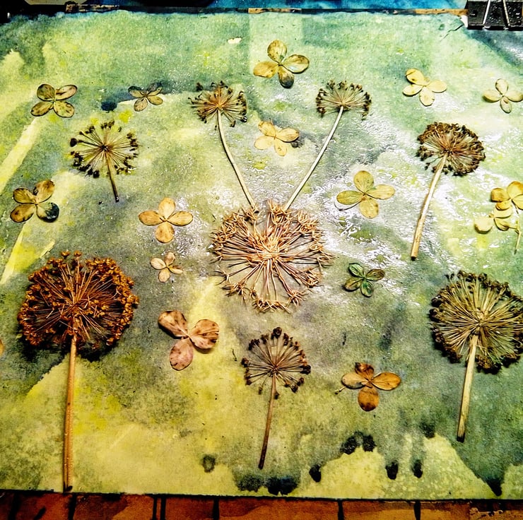 This original Cyanotype print features flowers from my lovely Wiltshire garden ... Allium seedheads and delightful Hydrangea flowers that I think look like butterflies.