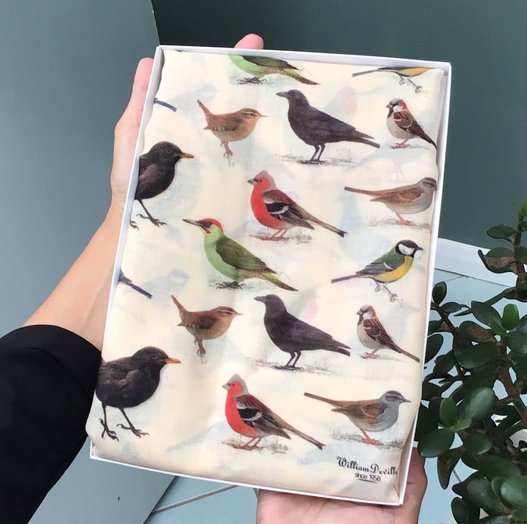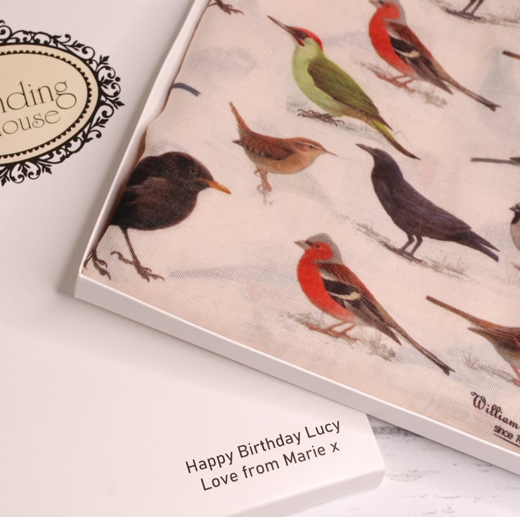 Hand printed by us in the UK, all our scarves are presented in a gift box with the option of adding a personalised message to the gift box lid at no extra cost.