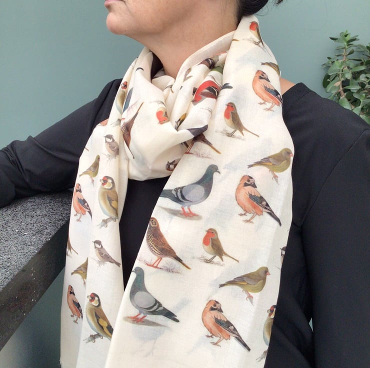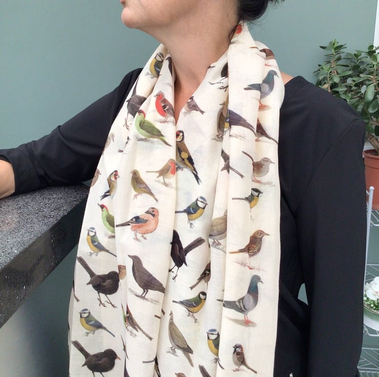 Bird scarf - Ladies Fashion Scarf - Garden Birds Scarf