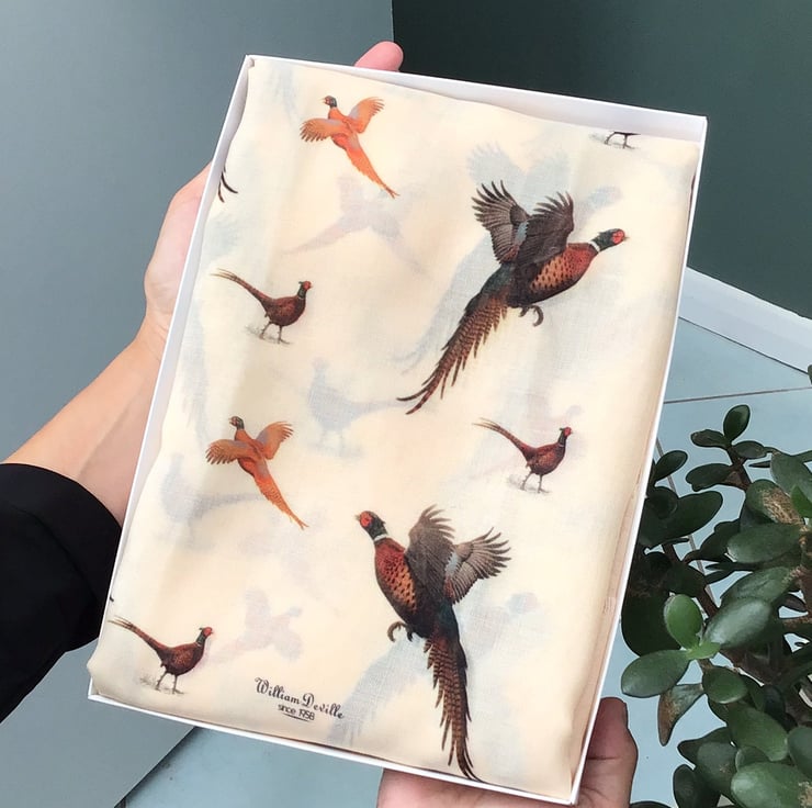 Hand printed by us in the UK, all our scarves are presented in a gift box with the option of adding a personalised message to the gift box lid at no extra cost.