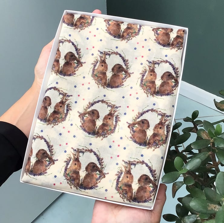 Hand printed by us in the UK, all our scarves are presented in a gift box with the option of adding a personalised message to the gift box lid at no extra cost.