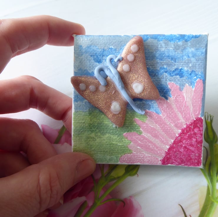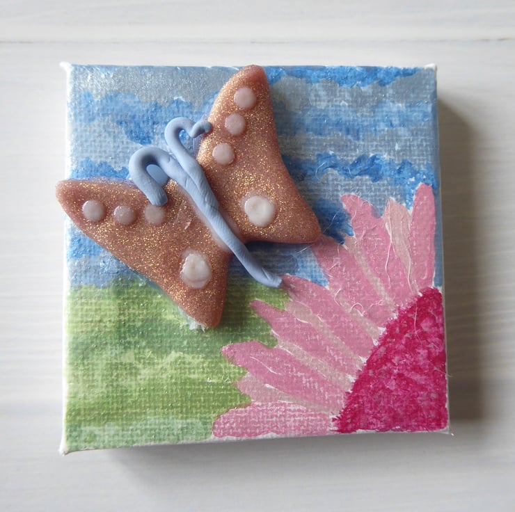 Created using polymer clay and metallic watercolour paints this butterfly artwork will add a pop of summery colour to any home, and be ideal for a token gift.