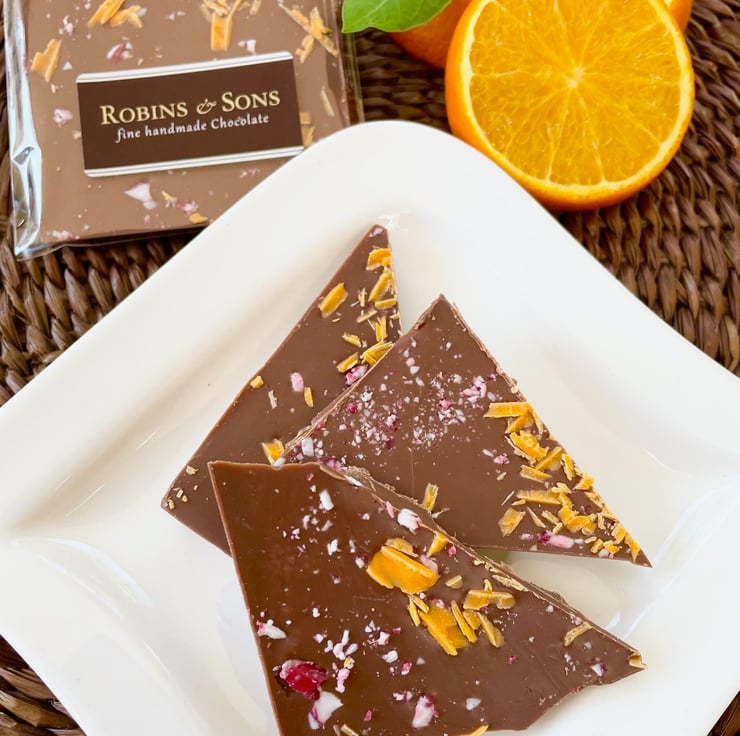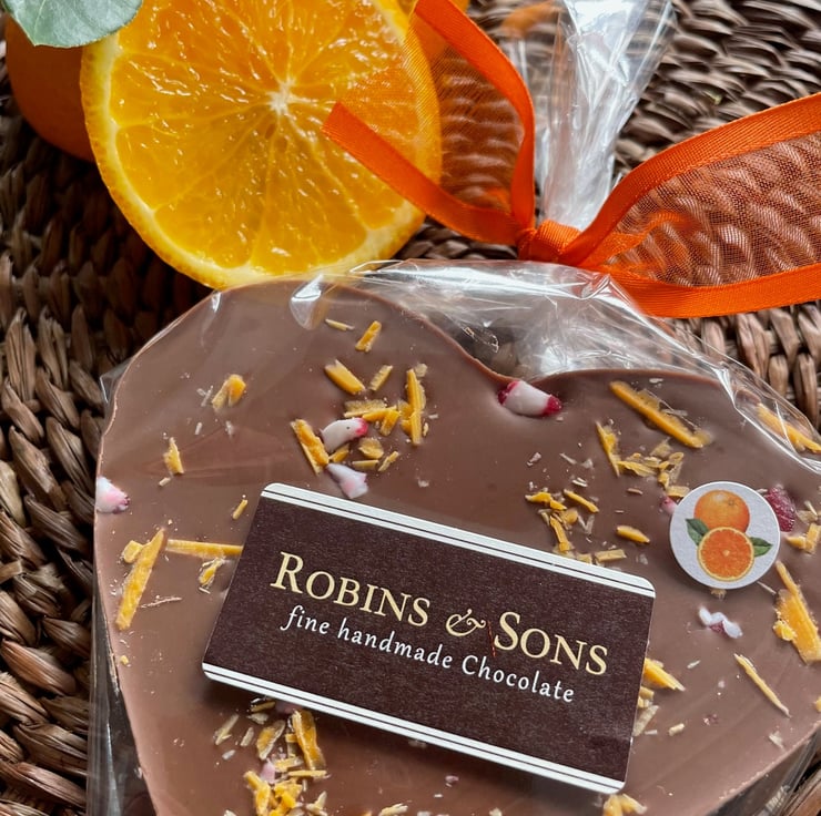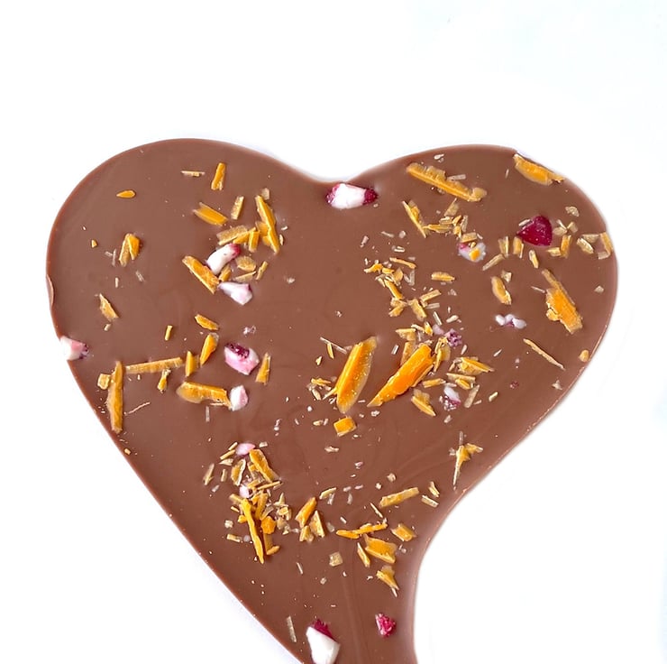 - Belgian milk chocolate 'heart shaped' bar flavoured with natural Valencian orange oil