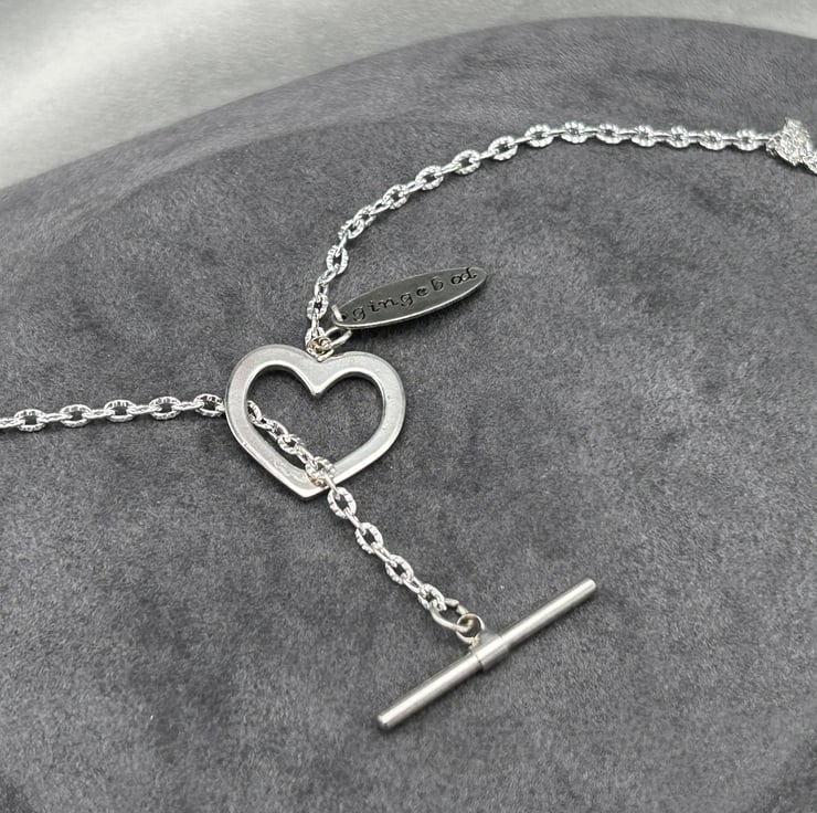 The necklace has a very bumpy central bead which is 17mm diameter, with simpler bumpy spotty beads to each side 12-15mm diameter and plain transparent spacer beads that are around 10mm diameter; little silver lined seed beads separate them. The necklace with its silver plated chain and heart shaped toggle clasp is approximately 20" in length. This can be shortened if you wish me to, please just let me know with your order. There is my gingebod jewellery tag at the clasp which identifies the necklace as a genuine Gingebod Designs piece.
