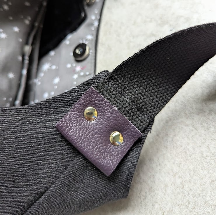 The strap has been made from 38mm wide black webbing with additional leather detailing - made as a cross body bag but choose a shorter shoulder strap if you prefer.