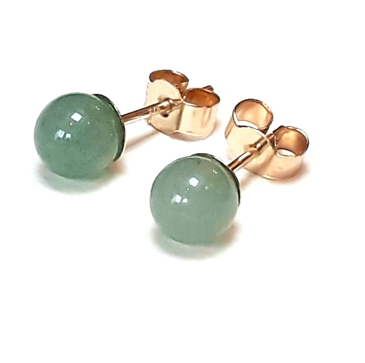 These stud earrings are solid 9ct gold including the backs. Each has a pretty green Aventurine stone which measures approximately 6mm / 0.23" diameter.