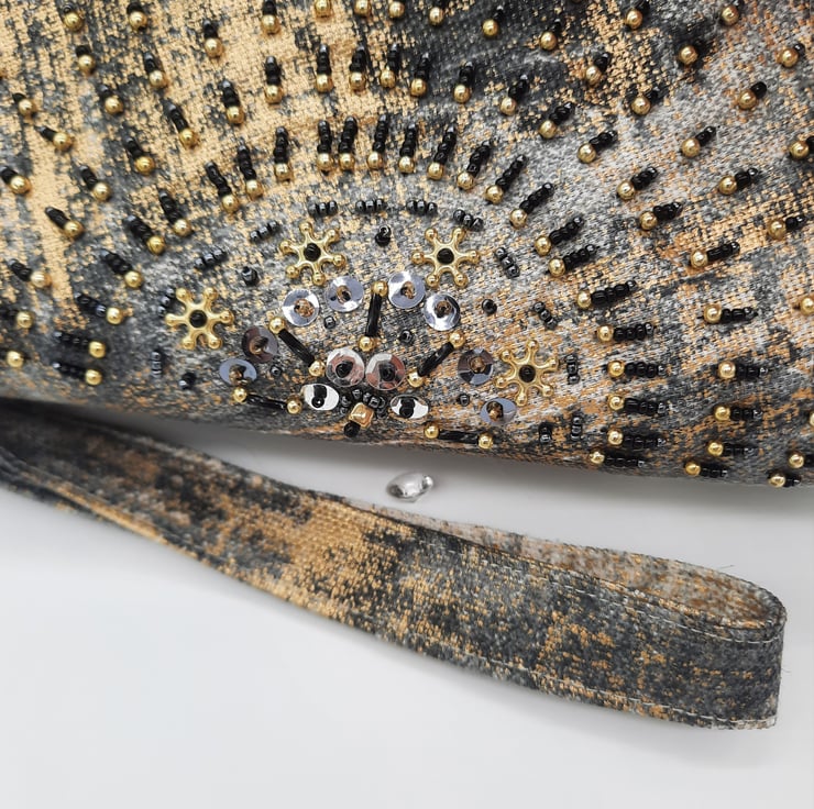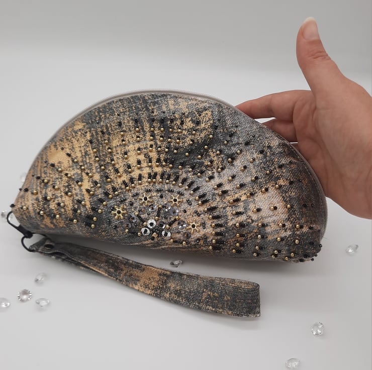 Here I have a beautiful beaded clutch bag with a matching wristlet.