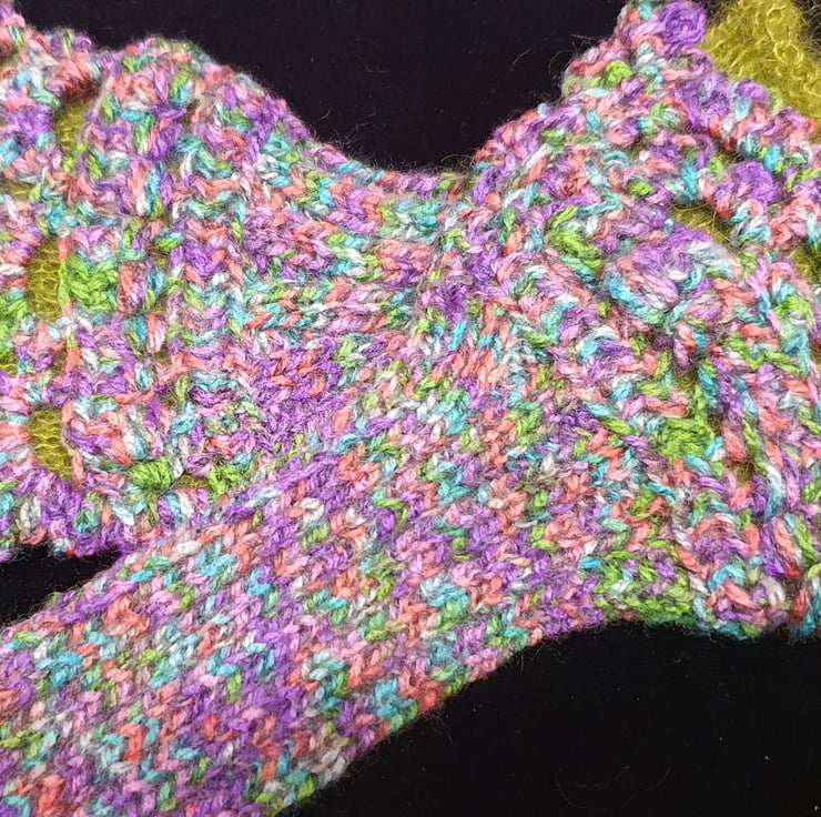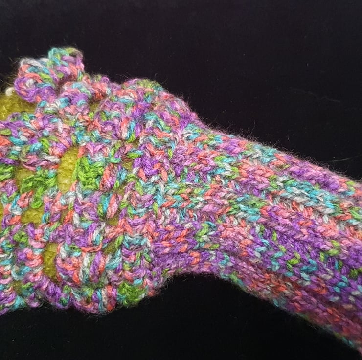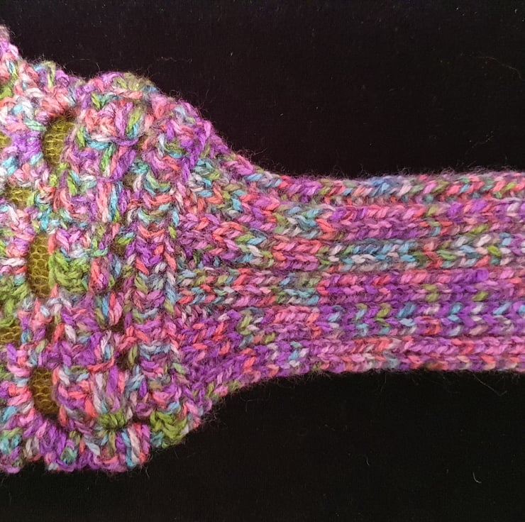 A combination of hand knitting and crochet makes these wristlets both unusual and striking.