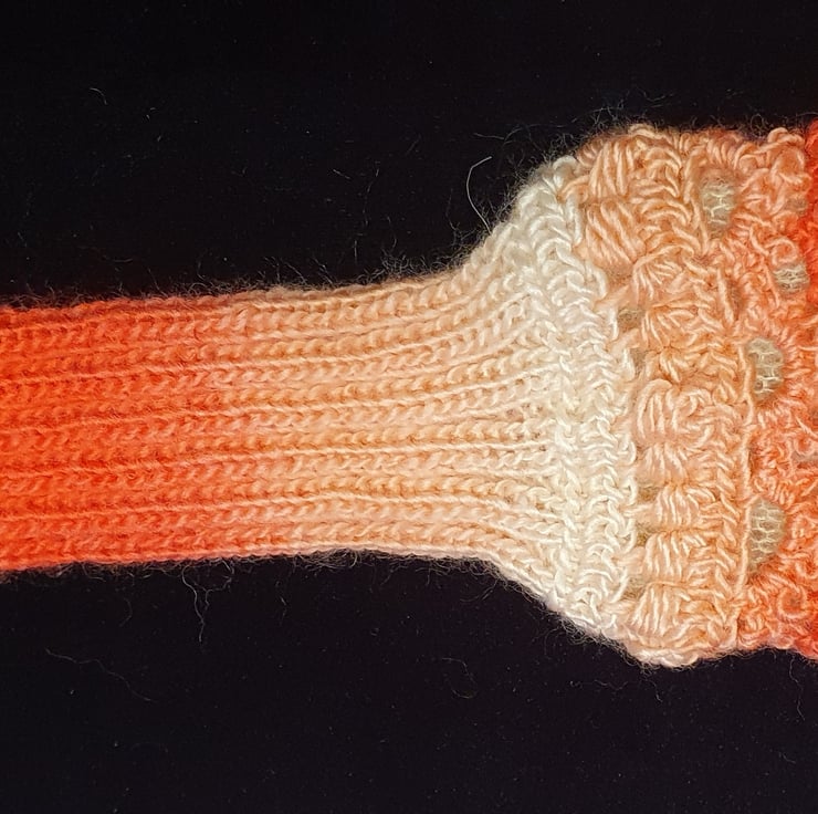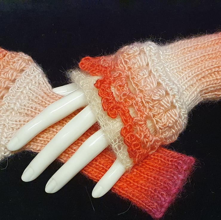 A combination of knitting and crochet makes these wristlets both unusual and striking.