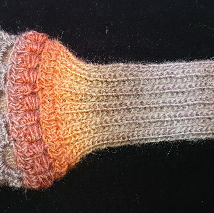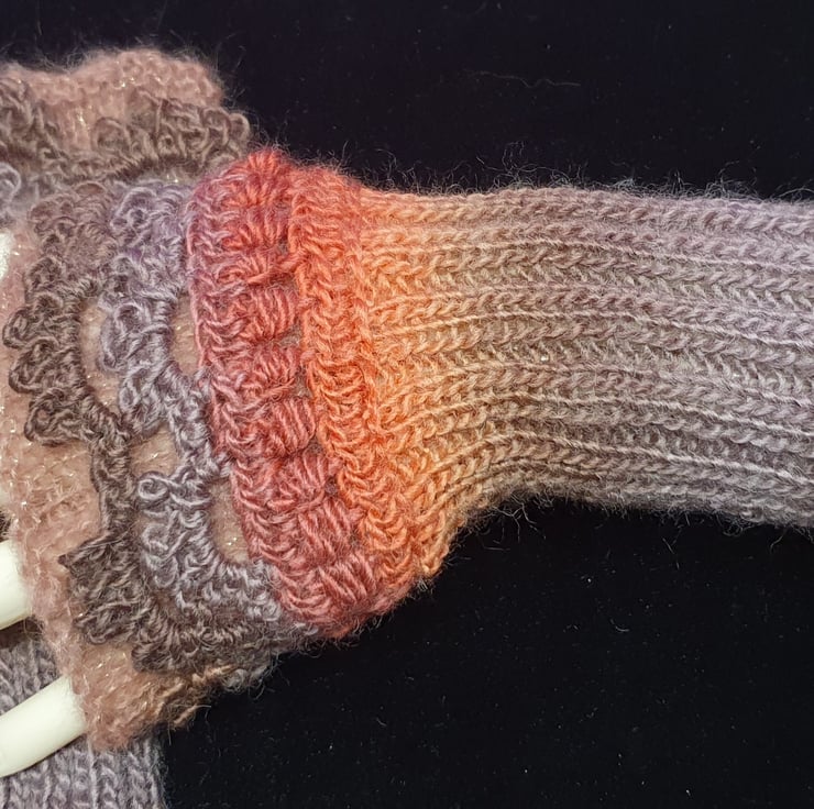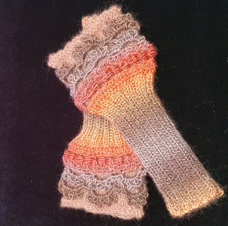 A combination of knitting and crochet makes these wristlets both unusual and striking.