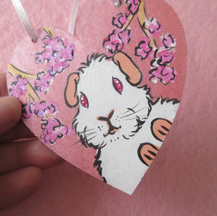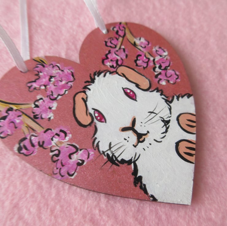 Cherry Blossom and Guinea Pig Hanging Heart Home Decoration