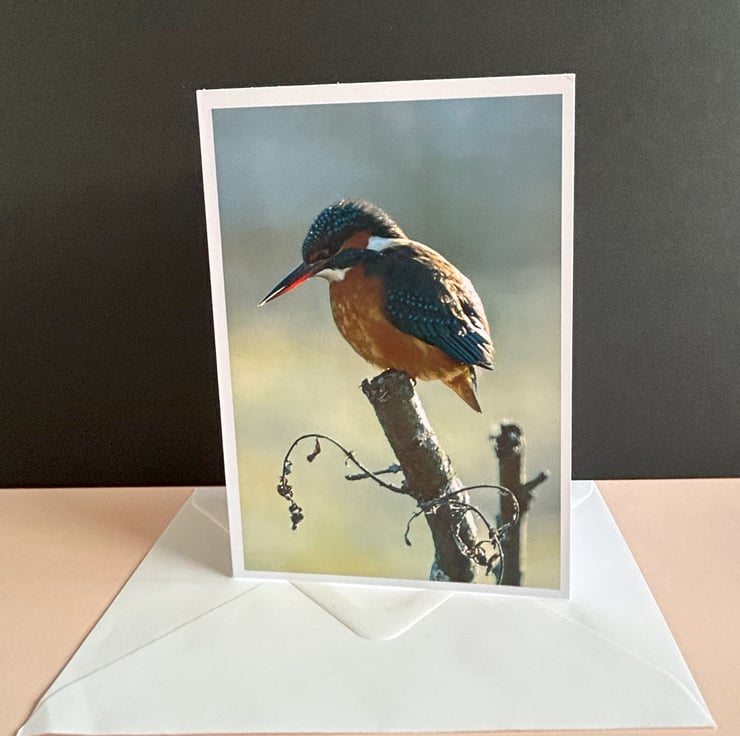 Handmade A6 card featuring an original photograph of a Kingfisher. The card is blank inside so is ideal for any occasion.