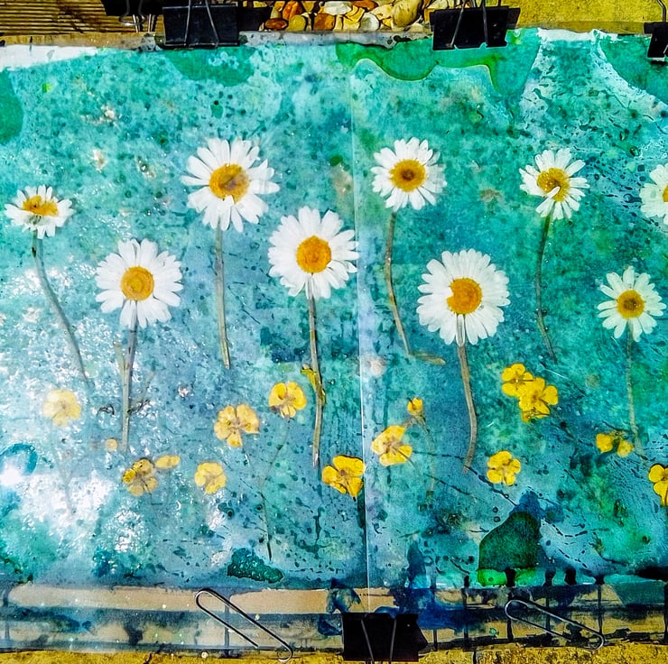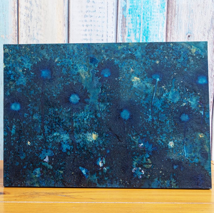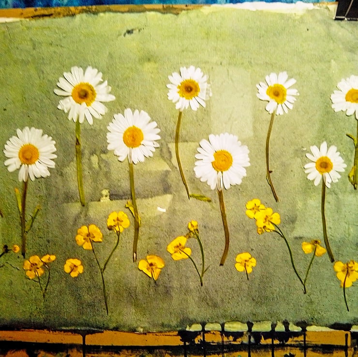This original Cyanotype print features wildflowers from the hedgerows around my lovely Wiltshire home ... gorgeous Ox-eye Daisies and sweet little buttercups, gathered while I was on my local walks.
