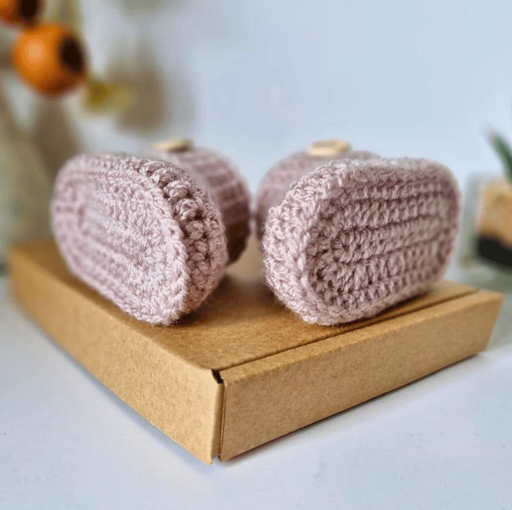 Handmade Baby Booties – Soft Crochet Shoes with Wooden Button Detail
